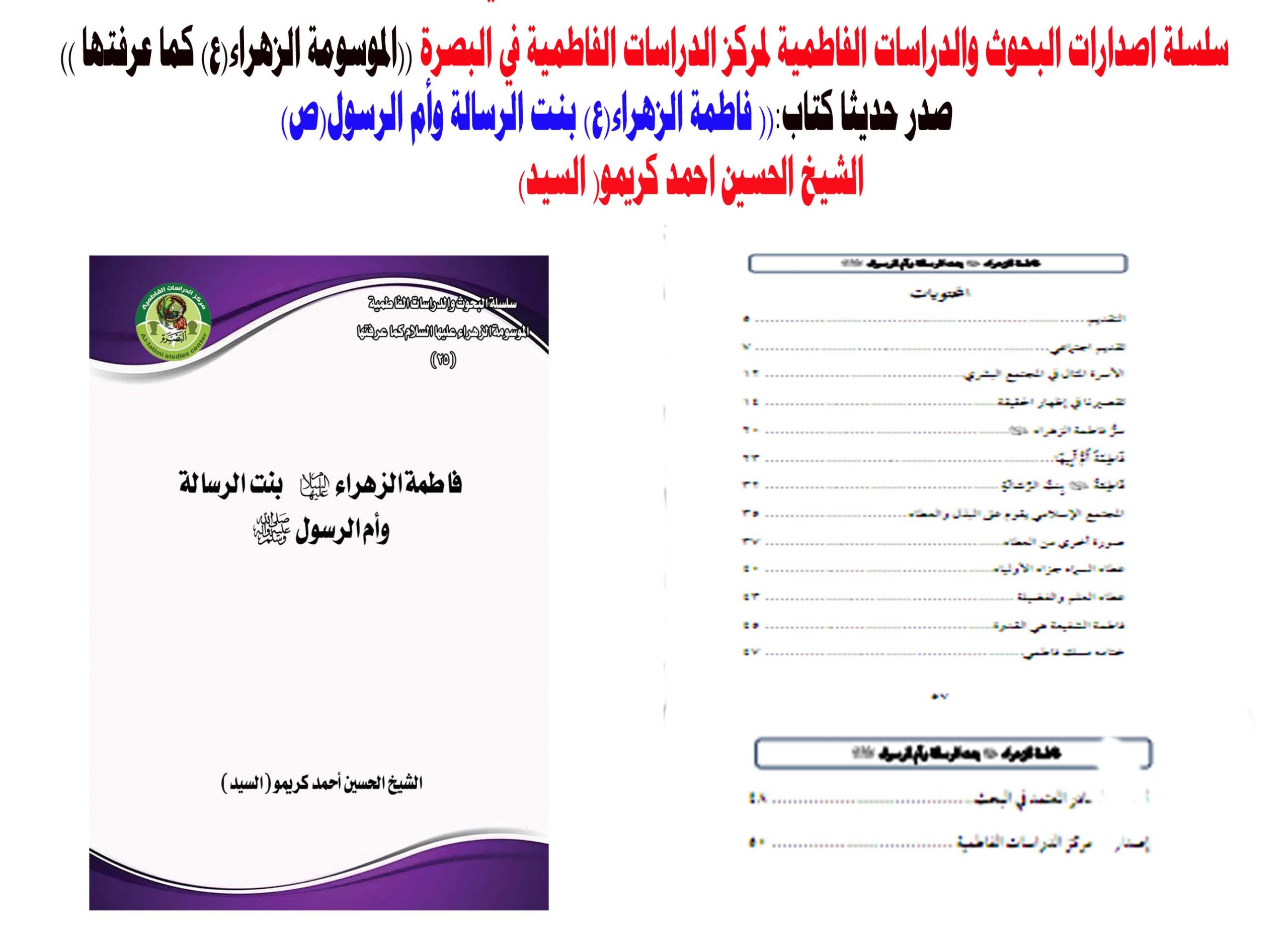 رسالة ماجستير (فاطمة الزهراء(ع) في صحيحي البخاري ومسلم (قراءة في صناعة الصورة) / الباحثة زمن هادي يسر