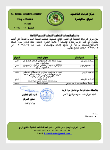 طرق تحصيل العلم ونشره وصفات العالم والمتعلم عند السيدة فاطمة الزهراء(ع)/ د.سهاد حسين العزاوي