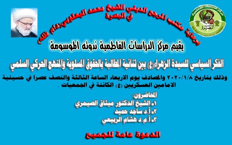 الصفحة الرئيسية المعرض مكتبة الصور اعلان الندوة الفكرية لمركز الدراسات الفاطمية في البصرة اعلان الندوة الفكرية لمركز الدراسات الفاطمية في البصرة 8 يناير، 2020 19 التصنيفات : المعرض | مكتبة الصور