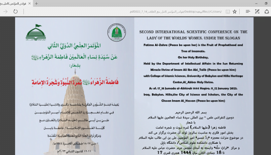 أعلنت الأمانتان العامّتان للعتبتين المقدستين الحسينيّة والعبّاسية عن تفاصيل المؤتمر العلميّ الدوليّ الثالث حول السيّدة الزهراء (عليها السلام). ويُقام المؤتمر...