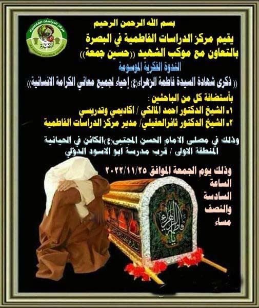 تعلن الامانة العامة للعتبة الحسينية المقدسة وضمن مهرجان فعاليات مهرجان كوثر العصمة الثقافي الدولي الثاني الذي يقام تحت شعار(( فاطمة الزهراء هدية السماء وكوثر...