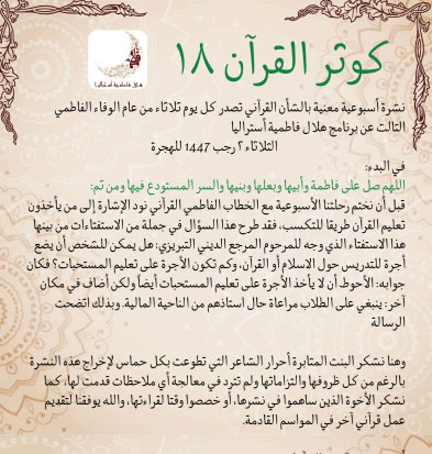 كوثر القرأن 18 / نشرةاسبوعية تصدر عن هلال فاطمية استراليا