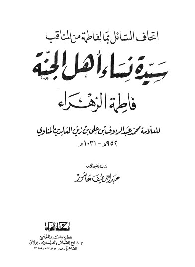 سيدة نساء اهل الجنة فاطمة الزهراء(ع) /محمدعبدالرؤوف بن علي بن زين العابدين المناوي